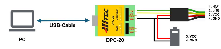 HiTEC’s DPC-20 is a modern servo programming and configuration interface designed for digital servo actuators. It connects HiTEC servos to a USB-C enabled, internet-accessible device and allows configuration via a web-based user interface.